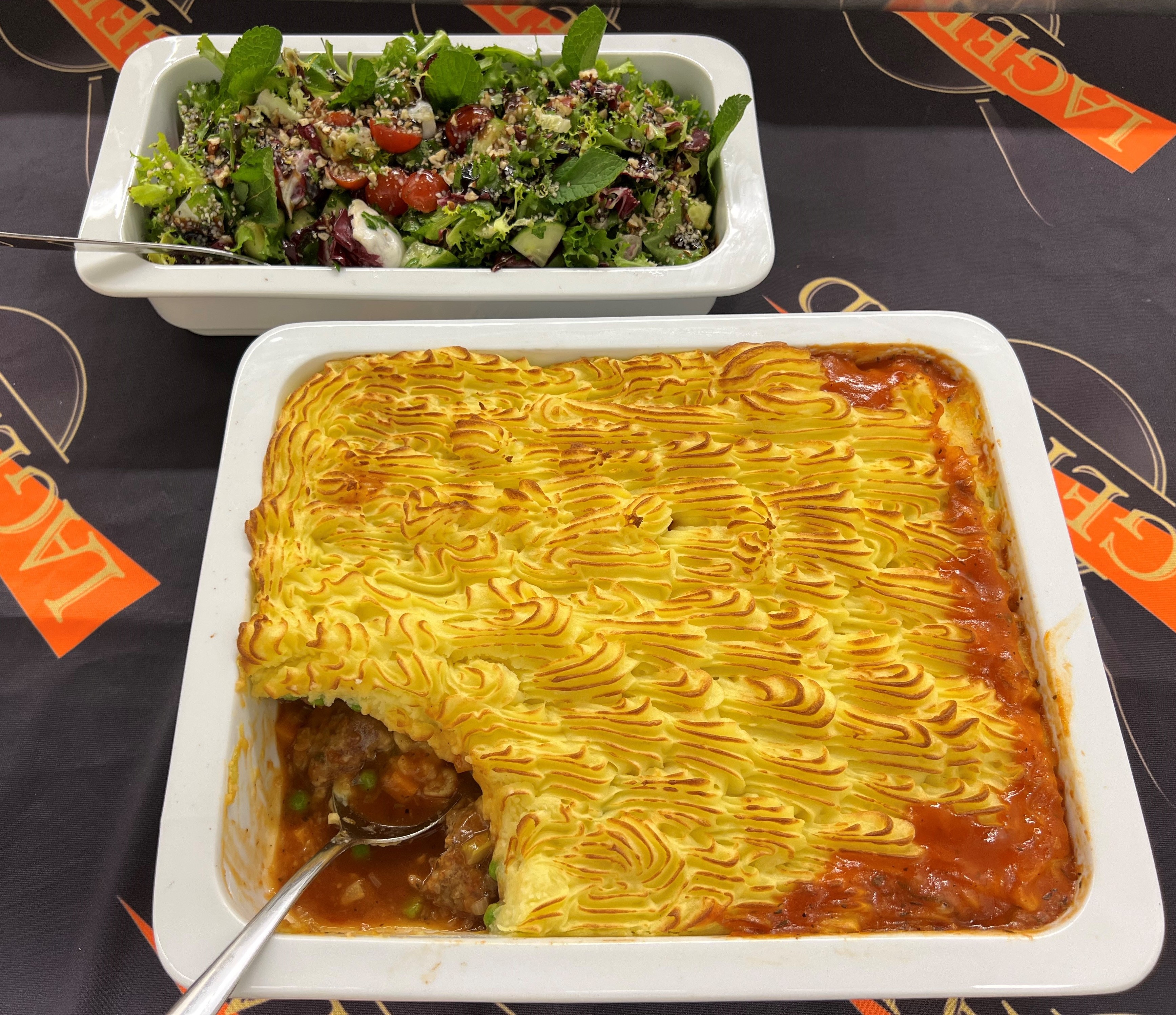 Kuullota kasviksia öljyssä n. 10 minuuttia, lisää pureet ja muut mausteet. Kuullota vielä sekoittaen pari minuuttia. Lisää tomaattimurska ja kookoskerma. Hauduta miedolla lämmöllä noin 30 min. Mausta suolalla ja lisää lammaspullat.
